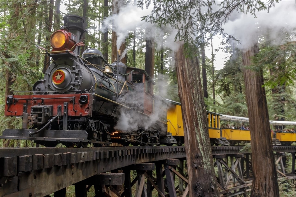 After breakfast at the hotel restaurant, we again take a ride on one the famous San Francisco Cable Cars, this time on a different route than what we rode on last night. When our Cable Car passes the San Francisco Muni Railway Car Barn we will jump off and visit the very interesting Muni Cable Car Museum. Here at the historic Cable Car Barn & Powerhouse we can view the actual cable winding machinery from an elevated gallery, as well as the path of the cable entering the building and leaving underneath the street. After our museum visit, we continue to Market Street and board our highway transportation to travel south to the Santa Cruz Mountains and the small town of Felton.