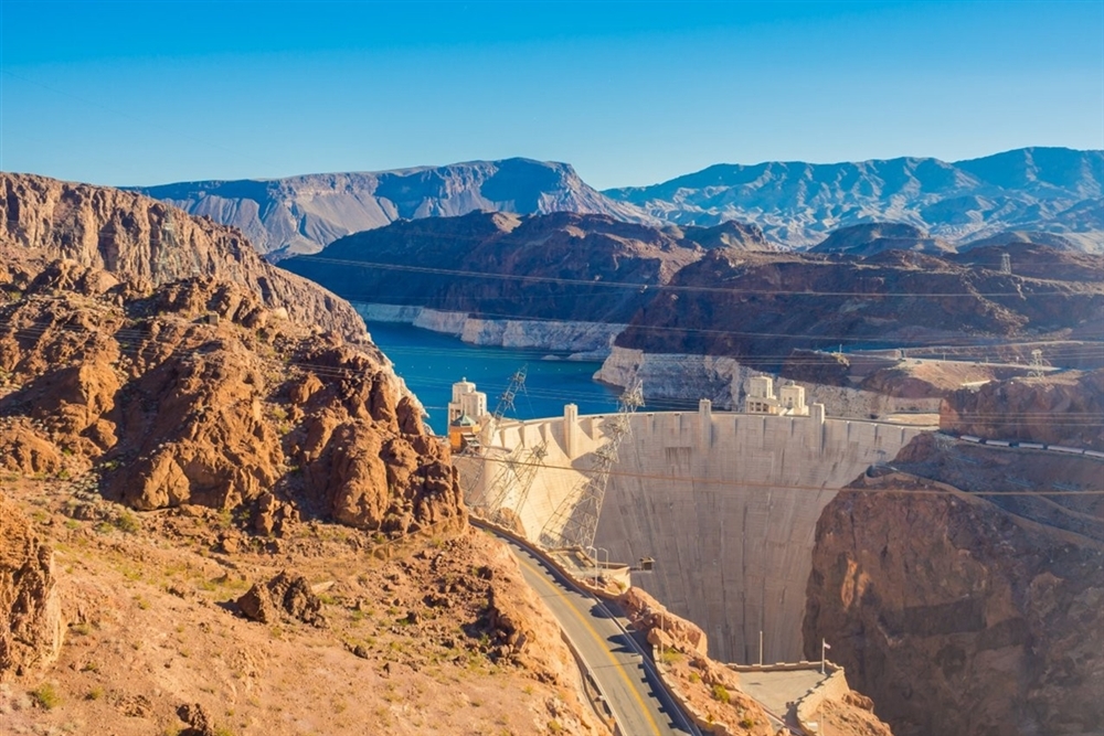 As we continue our journey we pass through Las Vegas, Nevada before entering the state of Arizona. Before leaving the state of Nevada we will make a stop to view Hoover Dam on the Colorado River. Half of this dam is in Nevada and half in Arizona. This dam is 726.4 feet high (221.3 meters) and is the 2nd highest in the United States.